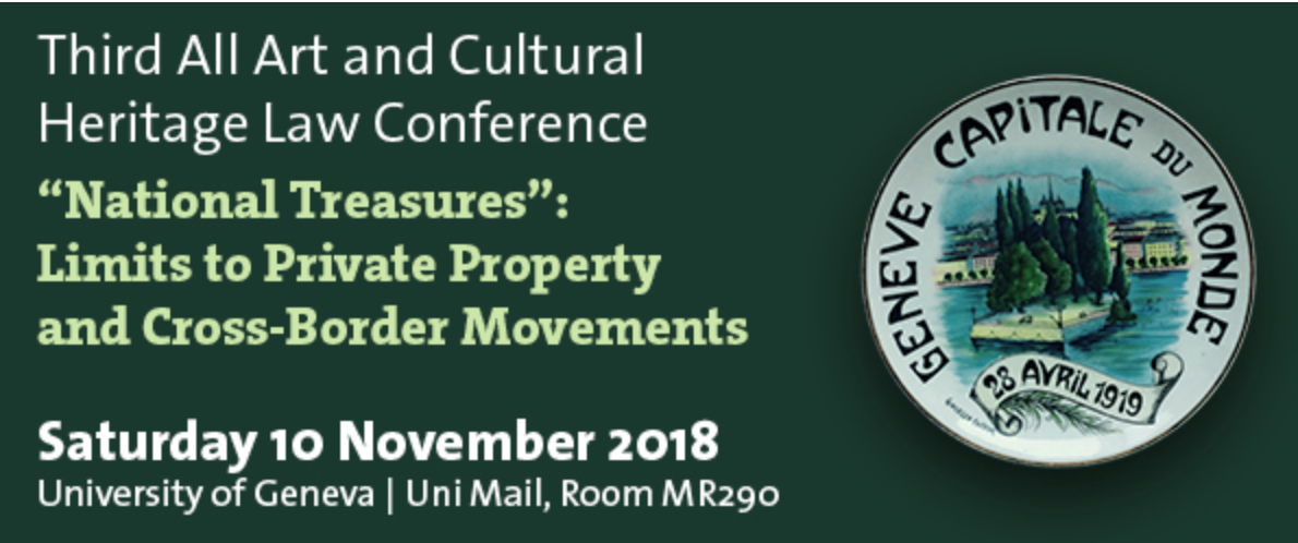 The 3rd All Art and Cultural Heritage Law Conference on “National Treasures: Limits to Private Property and Cross-Border Movements” will be held at the University of Geneva on Saturday, November 10, 2018 and will look at the concept of “national treasures” and to critically explore its meaning and impact on the regulation of the cross-border trade in cultural objects.